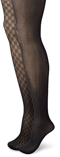Isaac Mizrahi New York Women's Scallop Textured Tights 2-Pack, Black, Medium/Large