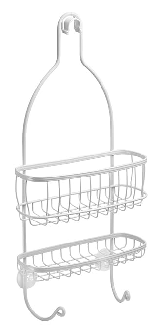 - Stores and organizes shampoo, conditioner, soap, loofahs, razors, washcloths and more