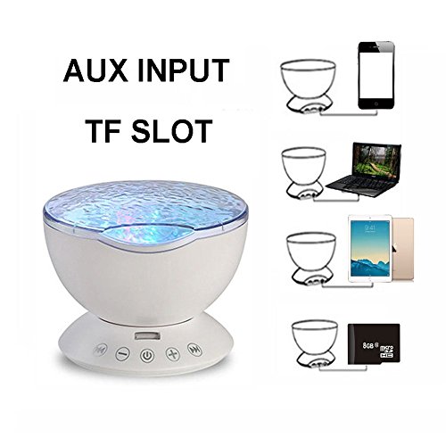 Dinlly Ocean Wave Projector, Touch Sensor 12 LED & 7 Color Night lights with Remote Control Built-in Music Player Decoration Lamp for Projecting Multi-Colored Waves on to Wall or Ceiling(White)