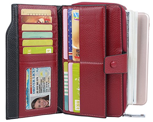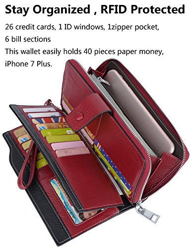 -. Title : YALUXE Women's RFID Blocking Security Large Capacity Leather Wristlet Clutch Wallet