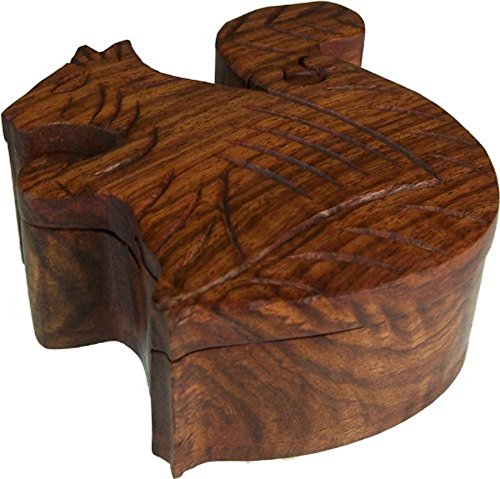 -. Title : Desi Karigar Sheesham Wood Puzzle Box. Squirrel Trinket Keepsake Box