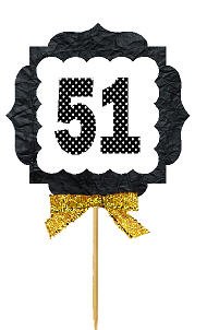 51st Birthday / Anniversary Gold Ribbon Hand Crafted Novelty Cupcake Decoration Toppers / Picks -12ct