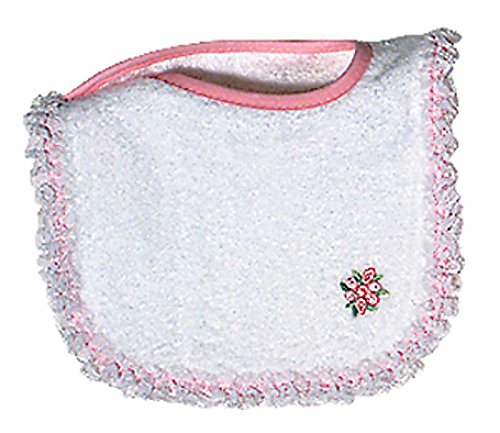 -. Title : Raindrops Girl Appliqued Lace Bib, White/Pink