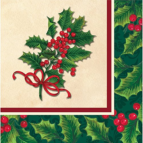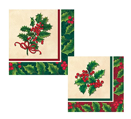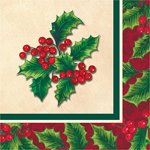 Christmas Napkins - Christmas Napkins - Christmas Boughs Of Holly Napkins Creative Converting - 32 Count