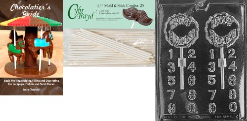 Cybrtrayd 'Birthday Lolly' Kids Chocolate Candy Mold with 25 4.5-Inch Lollipop Sticks and Chocolatier's Guide