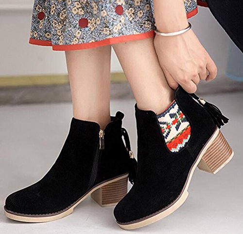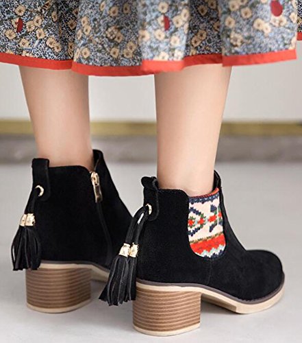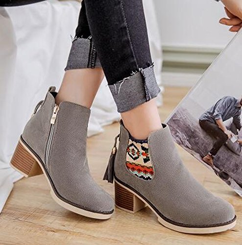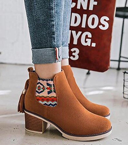 Binding : Apparel Product Description When you walk in the street or take part in some special occasions, do you want to be charming and attractive among others? Or are you tired of wearing the same booties with others? How could you miss these trendy outfits? This pair of comfy boots has zipper decorated on the side. You will like their antiskid, durable and waterproof design. With the chunky heel, you could be at ease when you dress in the comfortable shoes. Many people are in favor of its casual, fashion and elegant style with the closed round toe, ankle high and solid color. In the fall and coming winter, it's a must. They can fit any formal occasions, like wedding, party and club. With one, you will be the focus of fashion. Young ladies can buy one with your close friends. They are a wonderful gift. They are also easy-matching. Choose one suitable size so that it could fit you well. Welcome to our store. IDIFU is a registered trademark in the USA. We always work on helping every fashion lady to be unique and different. As a trendsetter, YOU ARE DIFFERENT! 0