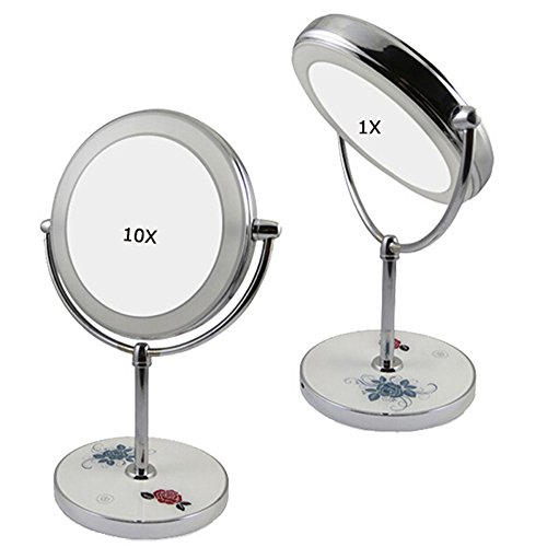 - Title : KI store@ Elegant LED Lighted Two-side Desktop Countertop Makeup Vanity Cosmetic Mirror 10x Magnifying with Adjustable Light Brightness Function (Usb Charging)