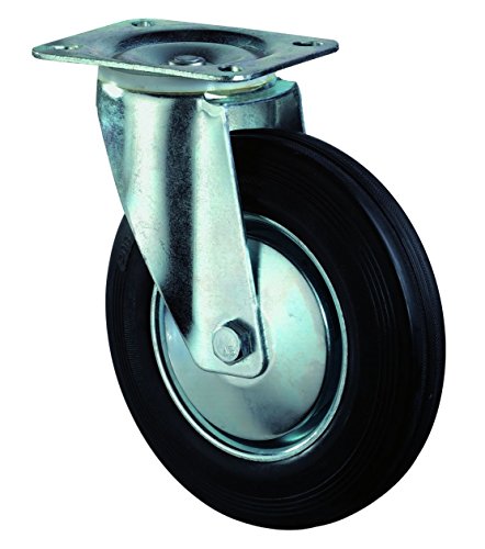 BS Rollen Transport-Lenkrolle, Anschraubplatte, Gummirad, Radkörper Stahl, 160 mm, schwarz, L400.B55.161