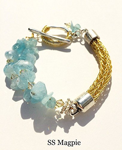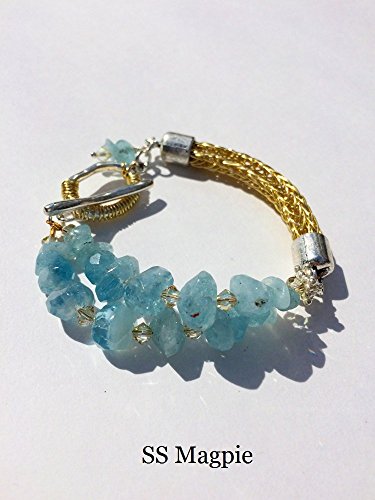 -. Title : Aquamarine, Gold and Silver Bracelet