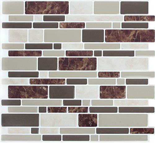 Peel & Impress Adhesive Vinyl Wall Tile, Soft Brown Marble Oblong, 11.25" x 10" (4 Pack)