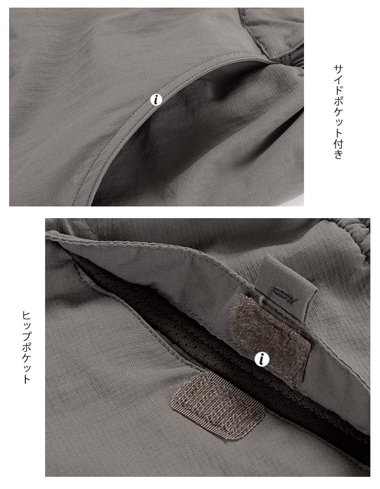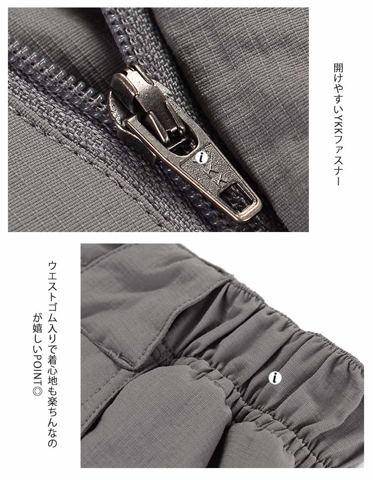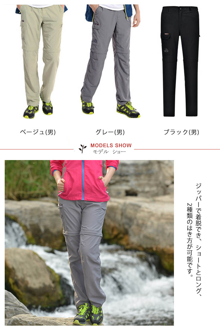 | ジッパーで着脱でき、ショートとロング、2種類のはき方が可能です。伸縮性・撥水性に優れ、長いシーズン着用頂ける。薄手でストレッチ性の高い素材を使用し、足上げがスムーズです。登山やキャンプといったアウトドアの活動はモチロン、バイクでのツーリングや釣り、農作業や工場での作業にも使えるパンツです。 | |