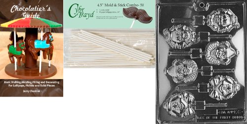 Cybrtrayd 45St50Bk-K006 'Clown Lolly' Kids Chocolate Candy Mold with 50 4.5-Inch Lollipop Sticks and Chocolatier's Guide