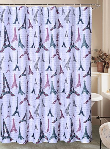 - Beautiful Floral Design Fabric Canvas Shower Curtain- Merci (Eiffel Tower)