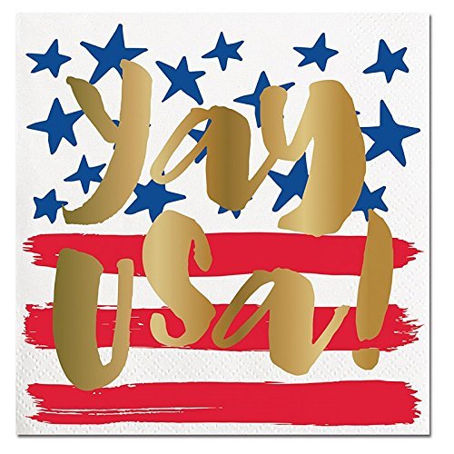 Slant "Yay USA!" Red White Blue Beverage Paper Napkins (20 ct)