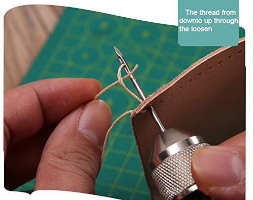 Includes a straight needle, a curved needle and an extra skein of waxed thread(about 25m).