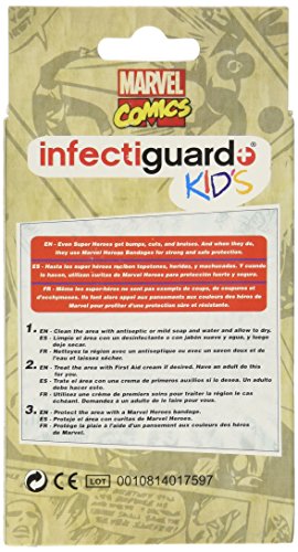 -. Feature : Latex Free and Wash Proof / Box of 20 Sterile Bandages / 3/4" H x 3" L / Now with infectiguard+ KIDS / 4 different designs