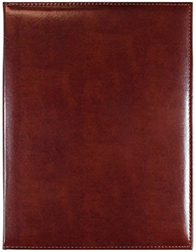 -. Feature : Cover size 9.5" W x 12.375" H / Genuine Bonded Leather, Brown / 40 page white perforated paper writing pad; Elastic Pen Holder / Curved Large Interior Storage Pocket with Business Card Holder / Nonwoven Fabric Lined Interior