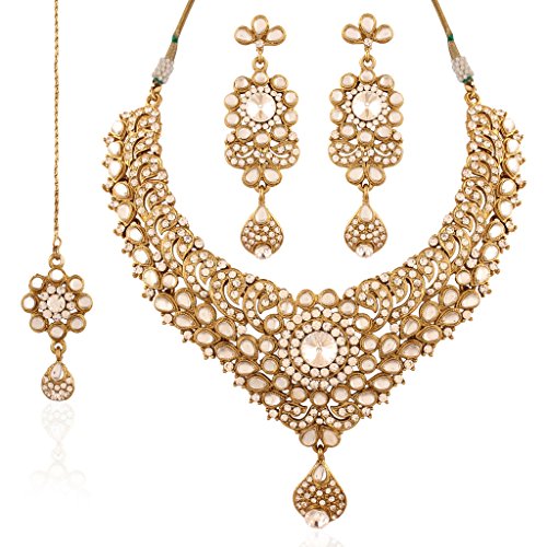 -. Binding : Jewelry -. Brand : I Jewels -. Color : White -. Department : womens -. Feature : Comes with the matching earrings and maang tikka. The look is stunning and preciously suitable for all kinds of dressy occasions. / 16" NECKLACE - Falls perfectly around the base of the neck like a collar. On a petite woman it will hit your collarbone while for plus size women it might feel more like a choker. / Handcrafted necklace set. Gives traditional look / Indulge in it or gift it and watch the compliments flow! / It is advisable to store jewellery in a zip lock pouch (air tight pouch), keep away from water perfume and other chemicals and clean it with dry and soft cloth -. Label : Isha Creation -. Manufacturer : Isha Creation -. Model : K7023W -. MPN : K7023W -. PartNumber : K7023W -. ProductGroup : Jewelry -. ProductTypeName : FASHIONOTHER -. Publisher : Isha Creation -. Studio : Isha Creation -. Title : I Jewels Kundan Necklace Set with Maang Tikka for Women K7023W (White)