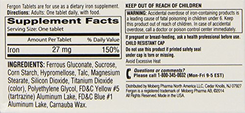 -. Title : Fergon Iron Supplement, Tablets, 100 Count (Pack of 3)