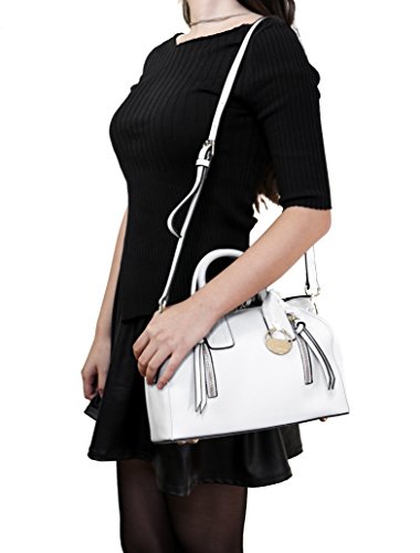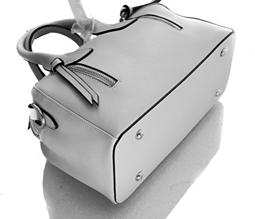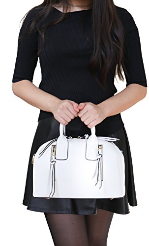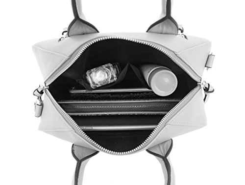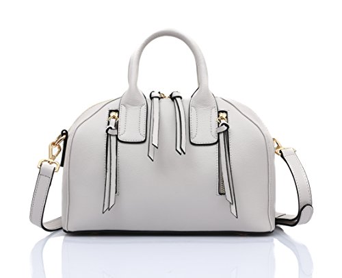 This designer-inspired satchel brings together classic elements to create a look that is at once timeless and on-trend. The gorgeous exterior of this satchel is made of high quality cow leather. It offers maximum space for its size. Clean structured lines accented with the subtle sparkle of the metal hardware make this purse a great companion for shopping, for an evening party, and for daily use. With the included detachable shoulder strap, it can be easily converted into a cross-body or shoulder bag. The double handles add class to any ensemble and keep you looking elegant. No matter where your day takes you to, this charming classic handbag will keep you both stylish and prepared throughout the day and night. Due to monitor variations colors may appear slightly different. Approximate Dimensions: 11" W X 7.5" H X 4.5" D (Interior capacity: small)Feature