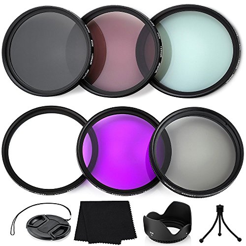 THE AMAZING KIT INCLUDES - 3 Pocket Lens Filter Pouch Carry Case, Tulip Lens Hood, Snap On Lens Cap, Cap Keeper Leash, mini flexible tripod, Microfiber Lens Cleaning Cloth.