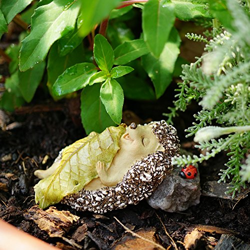 Top Collection 4408 Miniature Fairy Garden & Terrarium Hedgehog Sleeping with Leaf Blanket Statue, Small