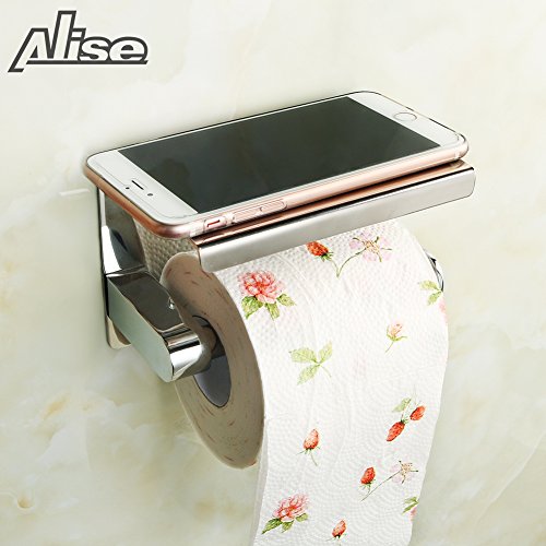 Alise GG5200 SUS304 Stainless Steel Toilet Paper Holder Tissue Roll Holder with Mobile Phone Storage Shelf,Polished Chrome Finish