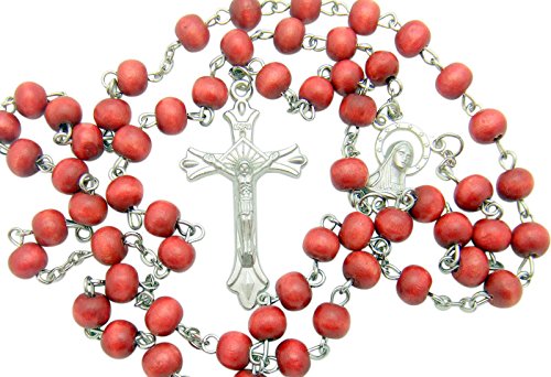 Catholic Rosary Gift Wood Beads & Silver Tone Metal Crucifix & Miraculous Centerpiece Italy