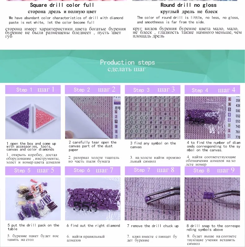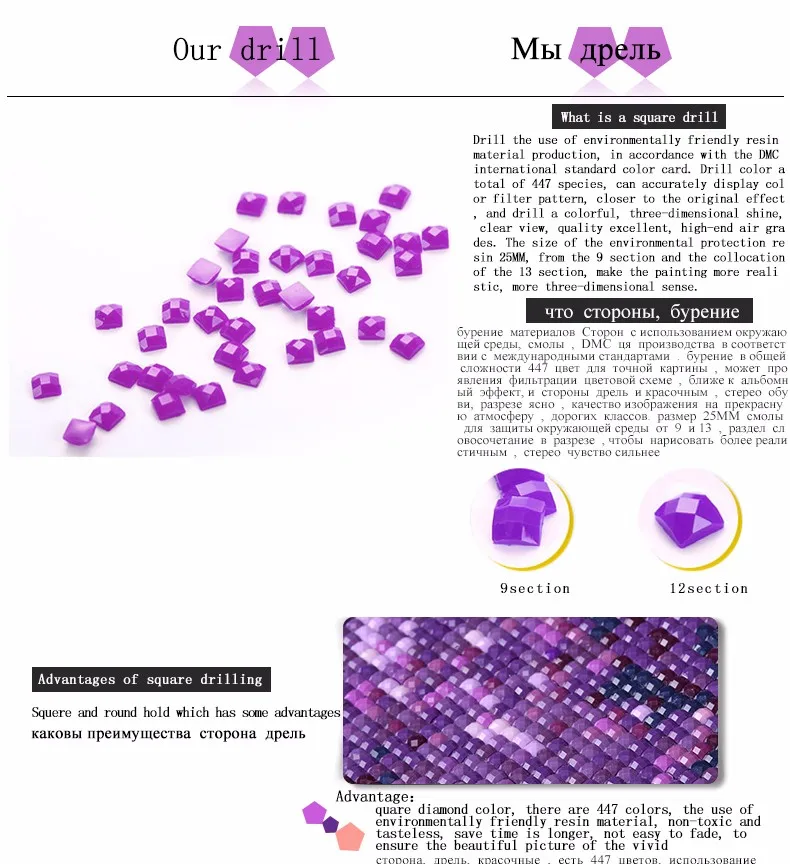 Dear, pay attention! The diamond paintings we sold are semi-finished product and does not include frame. The diamond painting material we sold is resin drill, this kind of painting is square diamond (need to stick the image completely).You only need to paste the diamond on corresponding area correctly. It also suits for several guys to finish. We also can design diamond painting with your own picture. ?