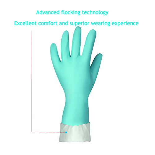 Household Gloves latex free for Kithen Dishwashing Do the Laundry Cleaning PVC Cotton Material 2 Pairs (L, blue+blue)