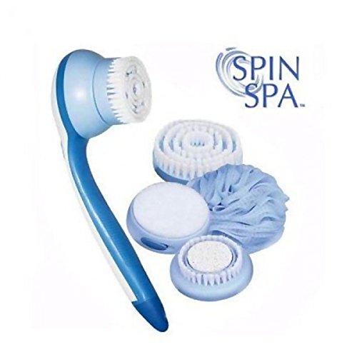 ReleaseDate : 2006-05-17 Studio : Spin Spa Publisher : Spin Spa Binding : Health and Beauty Product Description Cleans, massages, exfoliates, and more! Includes 5 spa attachments: cleansing; gentle exfoliation; massage; micro-dermabrasion; pedicure. Battery powered. Nothing to install. Use any soap or body wash. Perfect for hard-to-reach areas! Require 3 AA batteries (not included). Water resistant. Includes mesh bag to store attachments. As seen on TV. Made in China. 0