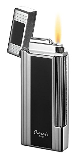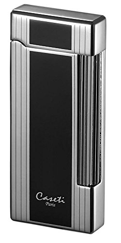 Visol Caseti Ravensdale Chrome Plated Vertical Lines and Black Lacquer Flint Traditional Flame Lighter