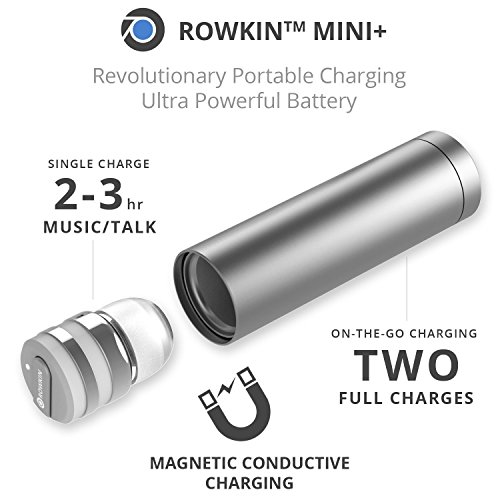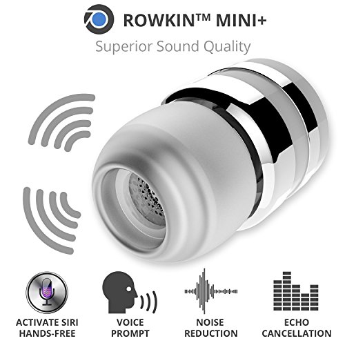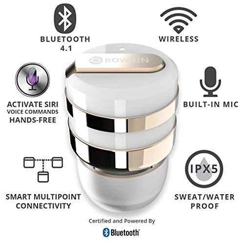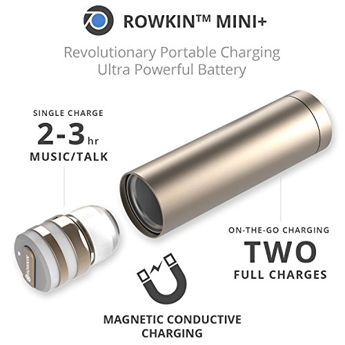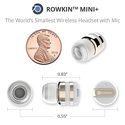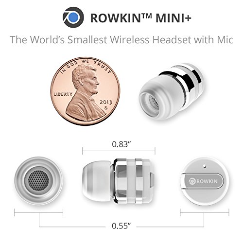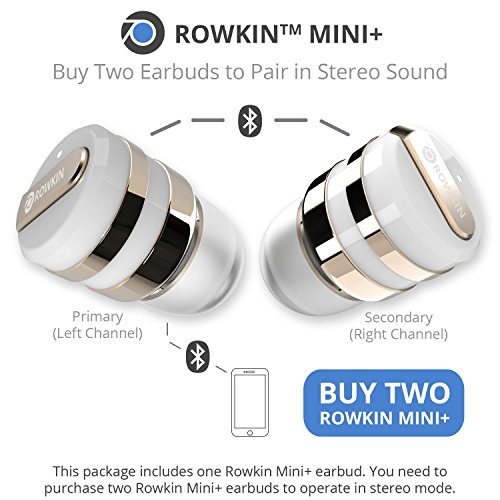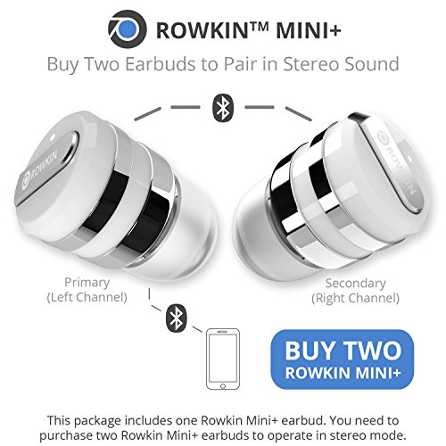 -. Feature : WIRELESS STEREO PAIRING VIA BLUETOOTH® 4.1: Pairing 2 earbuds wirelessly is now possible, making it the smallest cordless stereo Bluetooth headset on the market. Bluetooth 4.1 with advanced audio decode technology enables wireless connections to your smartphones and other Bluetooth devices and gives this ultra-small wireless earbud unparalleled sound quality. P.S. This package includes ONE earbud. Buy TWO (2) Rowkin Mini Plus+ wireless earbuds to operate in the stereo Bluetooth headphones mode. / LONG BATTERY LIFE WITH PORTABLE CHARGING: With the unique patented conductive portable charging system available only with the Rowkin Mini Plus+ Bluetooth earbuds, running out of batteries is a thing of the past. The new enhanced battery in the wireless headphones allows up to 3 hours of talk-time and up to 2 hours of music playback on a single charge. The small lipstick size charger can fully recharge the Bluetooth headset twice, providing additional 4-6 hours of music/talk time on the go. / VOICE COMMANDS, SIRI AND UNPARALLELED SOUND QUALITY: Voice prompts for incoming calls, pairing and caller ID are transmitted directly to the wireless headset. Siri is just a touch away via the multi-function button on the cordless earbud. Meaning you never have to take your smartphone out of your pocket, giving you a genuine wireless, hands-free experience. Noise reduction and echo cancellation technology filters ambient noise and enables clearer sound during calls and when listening to music. / SMART MULTIPOINT CONNECTIVITY: Pair the Rowkin Mini Plus+ Bluetooth earphone with two Bluetooth source devices simultaneously. For example, connect the headphone to your iPhone or Android phone, and to your iPad, tablet or laptop at the same time. If you are streaming music from the iPad, tablet, or laptop, and has an incoming call on the phone, the wireless earphone will intelligently switch to your phone seamlessly and it allows you to answer the call easily without the hassle of repairing. / DESIGNED FOR SPORT: The WaterSafe nano coating technology ensures that it's sweatproof, water resistant, and IPX5 waterproof. Making this wireless Bluetooth headphone perfect for the gym, running, biking, hiking, exercising, and any other activity. Compatible with iPhone 7/7 Plus/7/6s/6s Plus/6/6 Plus/SE/5s/5/4s/iPod/iPad/iPad Mini/iPad Pro/Macbook/Macbook Air/Macbook Pro/iMac/Mac Pro/Mac Mini/Samsung Galaxy S7/S6/S5/S4/S6 Edge/Edge+/Note 7/6/5/4/3/Edge/Android/Windows/tablets/laptops/computers.