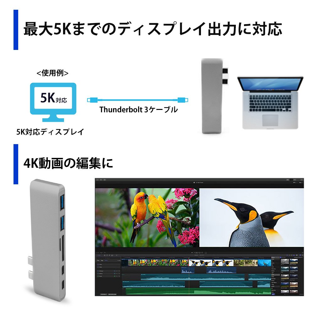 It corresponds to Thunderbolt 3, and it is a high-end model that supports high-speed communication of up to 40 Gbps and display output of up to 5 K.