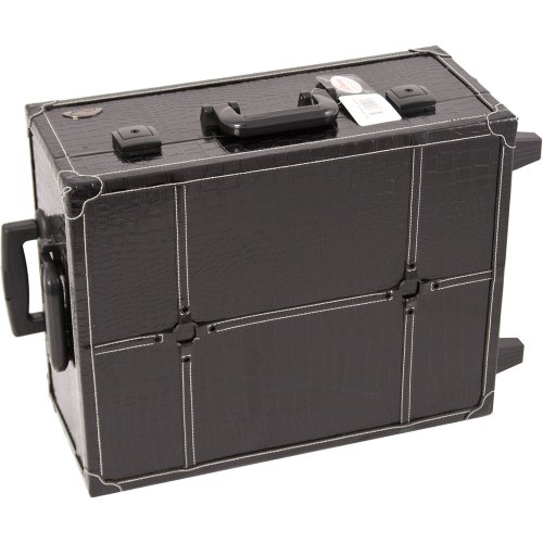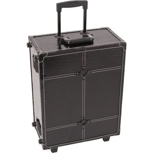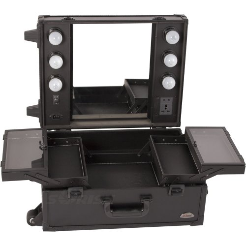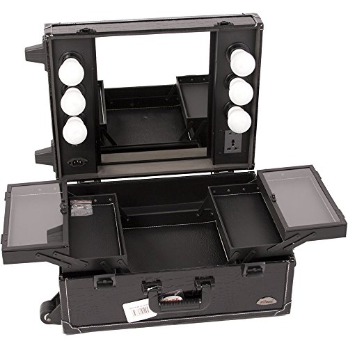 Sunrise Pro Rolling Makeup Desktop Studio Case with Trays, Lights and Mirror, Black Crocodile