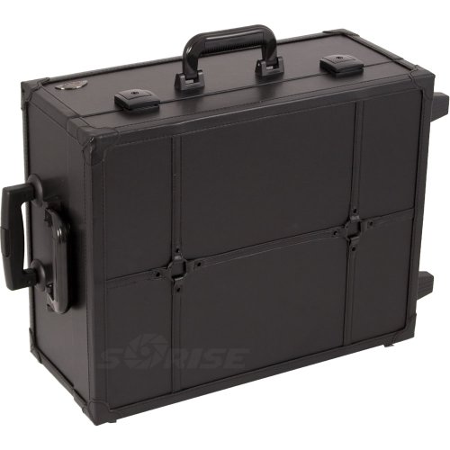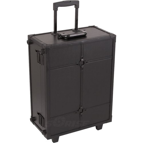 SUNRISE Professional Lighted Makeup Rolling Case C6012, Faux Leather, 4 Trays, Dimmer Switch, Locking with Mirror, Black