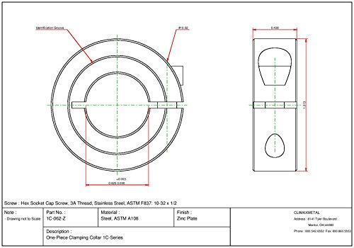 Climax Metals 1C-062-ZX10 One-Piece Clamping Collar, Zinc Plating, Steel, 5/8" Bore, 1-5/16" OD, 7/16" Width (Pack of 10)