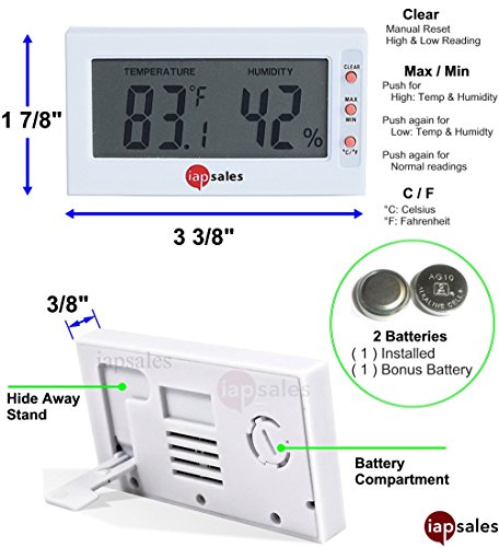 Easy to Read: Indoor Digital Thermometer and Humidity Meter. Large Digital Display Works in Celsius & Fahrenheit. Simple Temperature & Relative Humidity Monitor