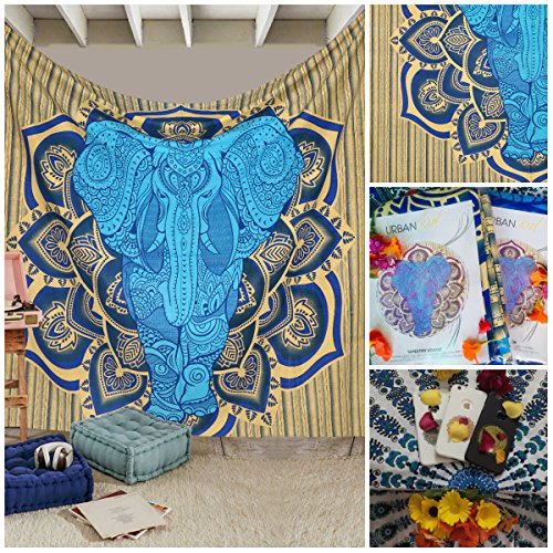 Studio : Urbanknot Publisher : Urbanknot Binding : Kitchen Product Description New concept Elephant in Mandala Taoestry is surely a must have design. Add a lovely touch to your bedroom space by hanging Indian mandala boho tapestry. It is Constructed from 100% cotton. A perfect piece to add a touch of class to your interior. Every piece is made with bright vegetable colors which is eco-friendly as well. Thin as sheet. Good, tight power loom construction. The charming floral and striped designs add to the beauty of this tapestry. The tapestry is multipurpose item can be used as wall hanging, bed cover, table cover, college dorm room wall hanging, etc. The tapestry can be used into college dorm bedroom. -Size : 90X90 inches and 228x228cms This Hippy Bohemian style Mandala tapestry can be used as any of the following purpose- Wall hanging Picnic Blanket vibrant and hip Dorm room accessory Beach Blanket / Sun Canopy Opulent Curtain Ceiling Cover beautiful Bedspread or Coverlet cozy Throw elegant Tablecloth Room Divider Furniture Cover Hippie tapestry Wall Hanging Mandala tapestry Bohemian wall hanging Indian wall tapestry Bohemian kitchen decor Art Tapestry As a Fabric for your creativity NOTE: Due to hand screen printing process, there is likely be imperfections with print, such as slight running of dye, teeny paint spots, slight print imperfections etc. We have painstakingly gone through each one and am only selling the highest quality though keeping in mind that slight 'flaws' are part of their uniqueness. 0