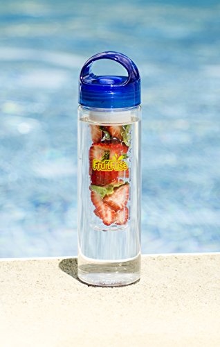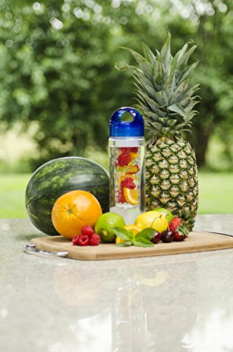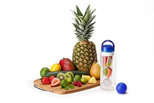 Simple Sports Solutions 24 oz. BPA-Free Plastic Fruit Infuser Water Bottle with Ice Ball Mold, Blue