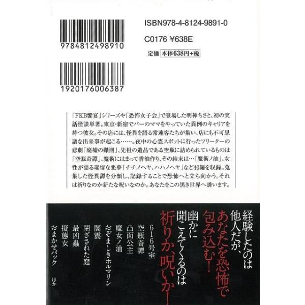 【商品説明】 定価(税込み):689円 値引き:5% OFF 「FKB饗宴」シリーズや「恐怖女子会」で登場した明神ちさと、初の実話怪談単著。東京・新宿でバーのママをやっていた異例のキャリアを持つ彼女。その店には、怪異を語る常連客たちが集い、店にも不可思議な出来事が起こる…。 バーゲンブック 新品 特価 格安 文芸 SF ミステリー ホラー 事典 東京 |