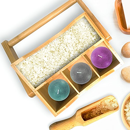 - CLEVER DESIGN — Made from premium quality bamboo wood —Complements most décor — Holds plenty to keep items organized —Includes 4 compartments total (1 large, 3 small) — Accommodates standard size napkins and utensils — Measures approximately 7.50”L x 5.75”W x 4”H (9.75”H with carry handle up)