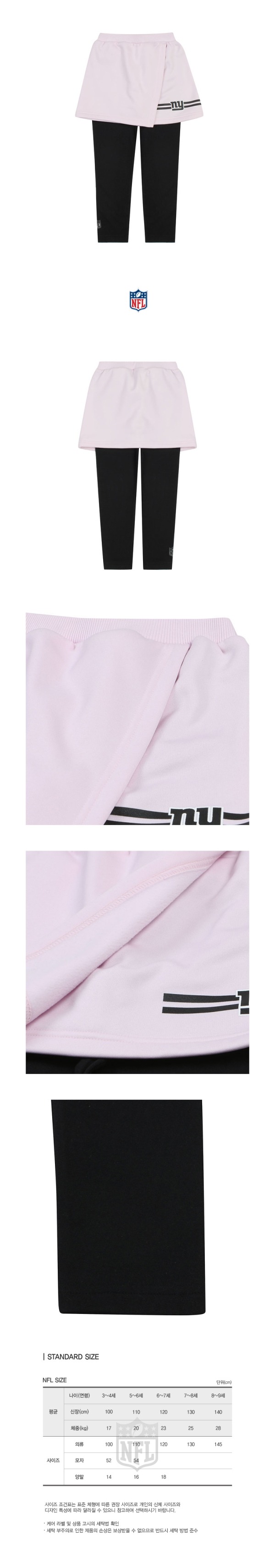 스커트와 함께 레이어드 된 스타일의 치깅스.안 폴리 스판 기모 레깅스가 함께 부착되어 있음.앞 팀마크 나염이 포인트.J10, T12와 코디