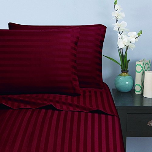 Elegant Comfort®Damask-STRIPES 1500 Thread Count Egyptian Quality Wrinkle & Fade Resistant - Luxurious Silky Soft 4pc Sheet Set, Deep Pocket, King, Burgundy