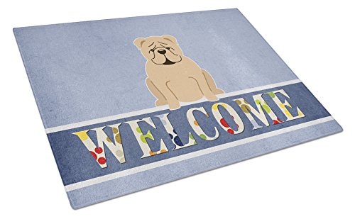 Caroline's Treasures English Bulldog Fawn Welcome Glass Cutting Board Large, Multicolor