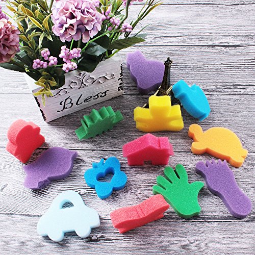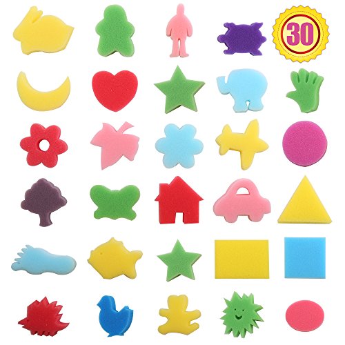 Purture 30pcs Sponge Painting Shapes Painting Craft Sponge for Toddlers Assorted Pattern Early Learning Sponge for Kids Shipping by FBA