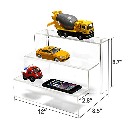 SOLID AND SUPER CLEAR - Made of super clear 5mm thicknees acrylic panel, while other’s thicknees is 3mm. So our 3 Steps Acrylic Display is more solid and stable.