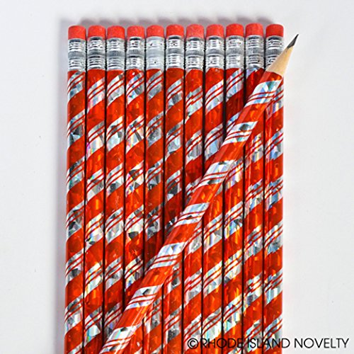 -. Feature : Lot Of 24 / Size: 7.5" / Metallic P.R.Ism / With Erasers / Christmas Candy Cane Design