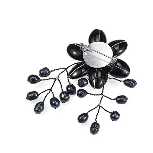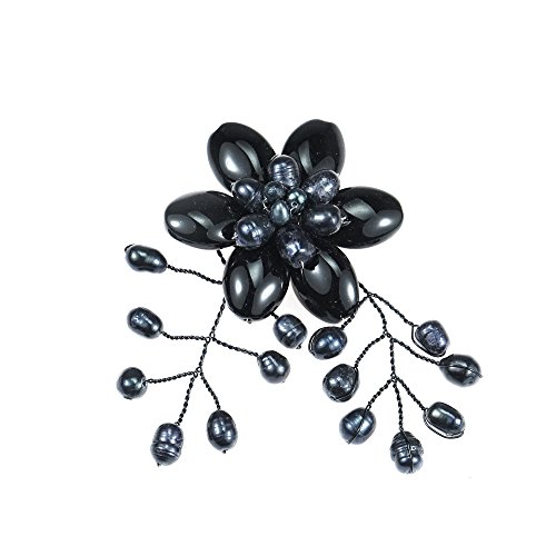 -. Title : Nature Loving Reconstructed Black Agate-Cultured Freshwater Pearl Floral Drape Pin Brooch