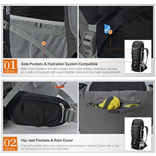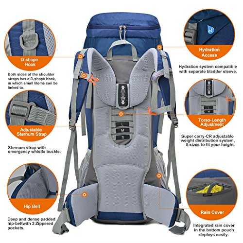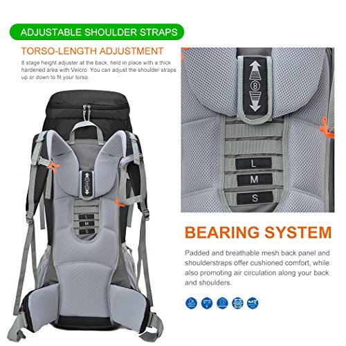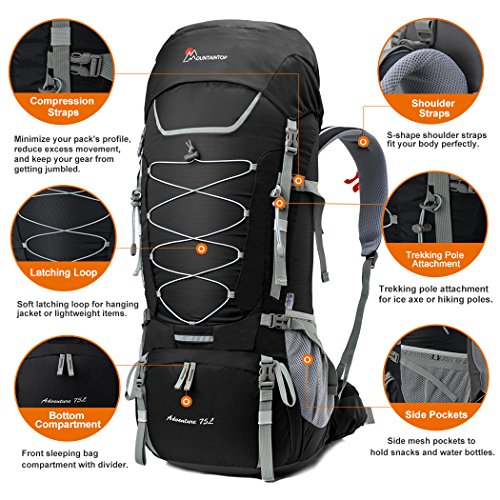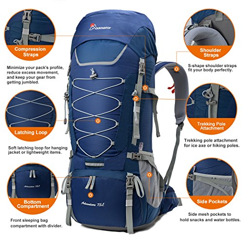 -. Title : Mountaintop 75L-80L Internal Frame Backpack Hiking Backpack with Rain Cover